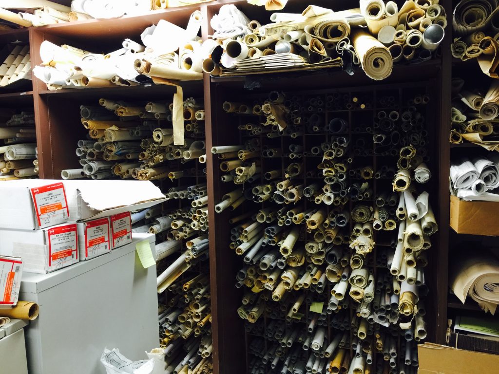 Picture of city plan documents in vault