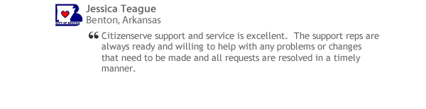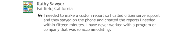 The total support program provides you with unlimited services and support. You will be assigned a certified support engineer who will work with you to understand yours goals and objectives and configure citizenserve to meet your needs. Once your setup is complete your support engineer will schedule online training with you in small groups or individually based on your needs. Help is just a click a away with our support center, where you can request help, additional training, or ask general questions. If your request is urgent will will respond to you in less than an hour, for your standard requests we will respond on the same business day. You have complete access in citizenserve to create your own reports and make administrative changes, or you can ask our support engineers to make these changes for you. The total support program is included in your user subscription with no additional fees or hidden costs.