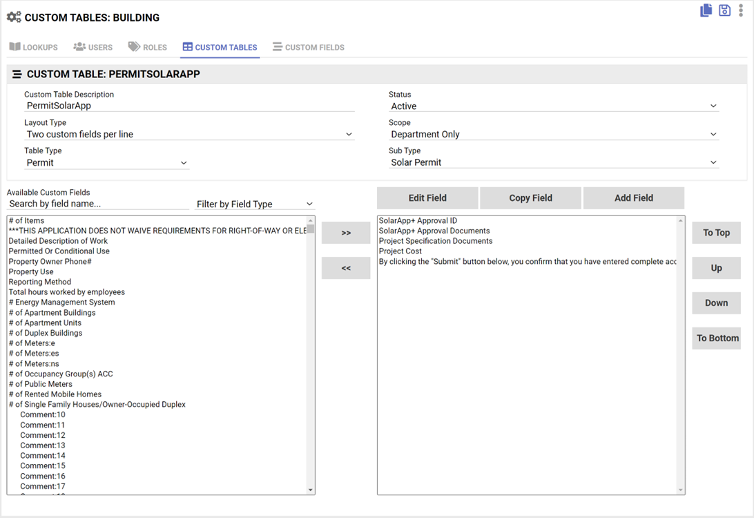 - Add any other custom fields your jurisdiction would use to report or track your solar projects.