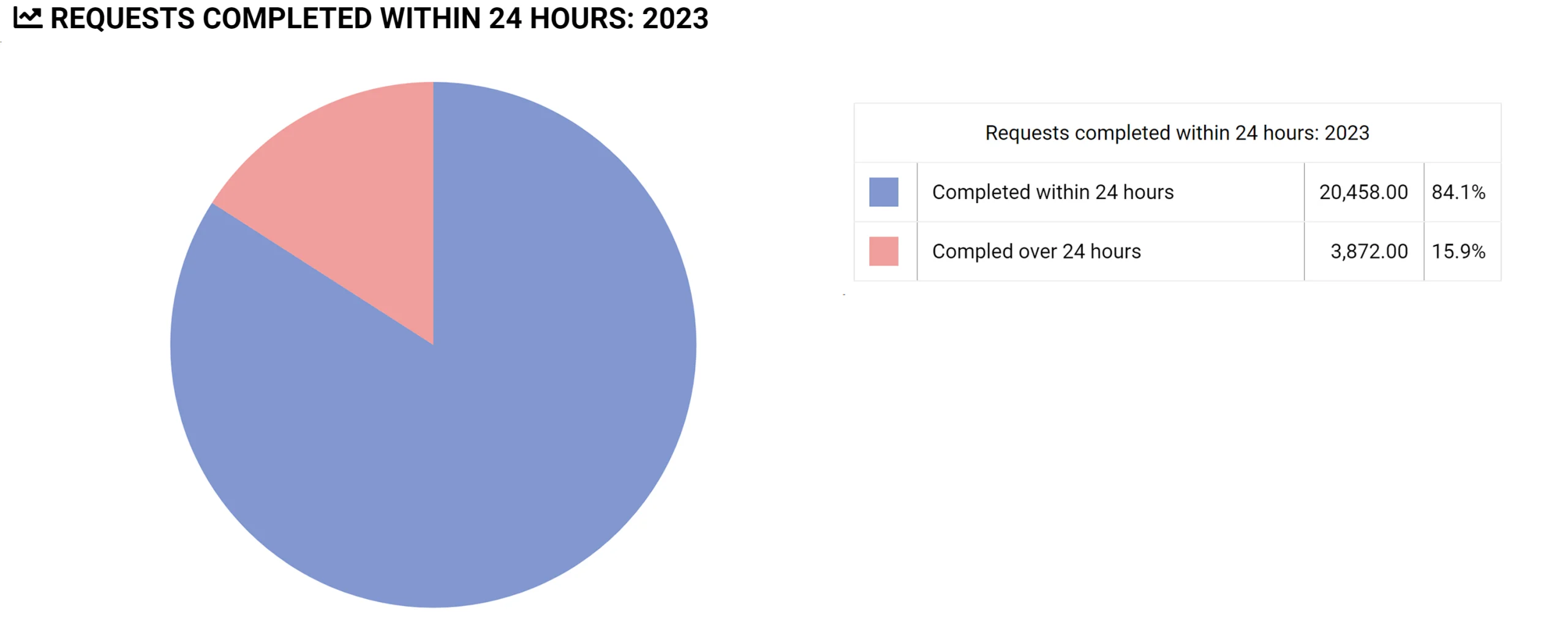 • We completed 84.1% of your requests on the same day or within 24 hours